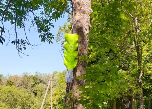 “Slazds darbojas, izmantojot tikai savu krāsu kā pievilināšanas līdzekli. Zaļā krāsa īpaši piesaista— vabolei ļoti patīk spilgti zaļš tonis. Ja slazds atrodas saulē visu dienu, tas kļūst vēl pievilcīgāks, un vaboles lido tam klāt. Tās atsitas pret piltuves malām un iekrīt savākšanas trauciņā, no kura inspektors paņem paraugu un nogādā to laboratorijā identificēšanai,” skaidroja VAAD pārstāve Zandere.