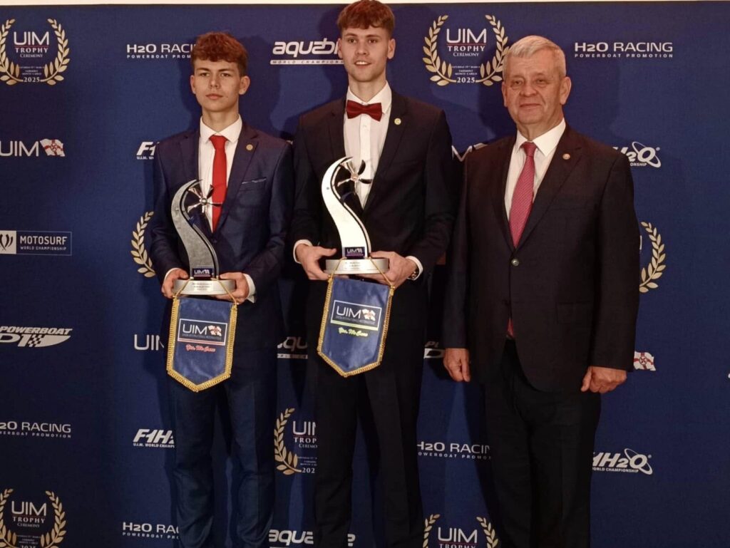 Šogad Starptautiskās ūdenssporta apvienības pasaules čempiona titulu saņēmēju balvas pasniedza baušķeniekiem Nilam un Ardim Slakteriem par panākumiem ātrumlaivu sacensībās.