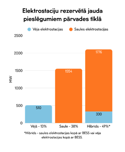 Jau ziņots, ka 2023. gada vasarā atjaunīgajiem (AER) projektiem rezervētā jauda pie pārvades tīkla sasniedza gandrīz 6 gigavatus (GW), tādēļ AST pārtrauca jaudu rezervāciju jaunu elektrostaciju pieslēgšanai. Pēc grozījumiem likumā, kas līdz 2025. gada 30.aprīlim ļāva vienreizēji atteikties no rezervētajām jaudām, nezaudējot iemaksāto garantijas maksu, komersanti ir izvēlējušies turpināt attīstīt 32 AER projektus, to kopējai jaudai sasniedzot 4 GW. No tiem AST ir noslēdzis jau24 AER pieslēgumu līgumus, kopējai jaudai pārsniedzot 2 GW.Tas ir nozīmīgs apjoms vietējās ģenerācijas palielināšanai Latvijā, lai stiprinātu energoneatkarību.