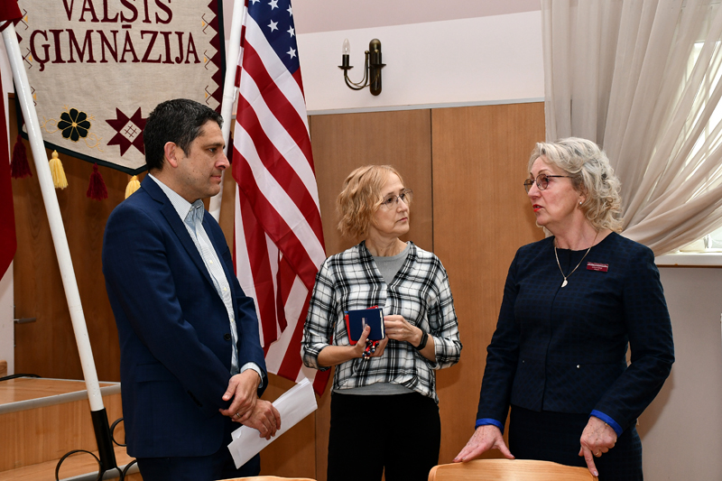 10.c klases skolniece Diāna Grantiņa pievēršas nopietnākām tēmām ar jautājumu: «Kādas sadarbības attiecības ir starp Baltijas valstīm un ASV?» Šis jautājums interesē visus. O. Avila min, ka sadarbība starp Baltijas valstīm un ASV ir ar senu vēsturi, tieši pagājušajā gadā atzīmēta 100. gadskārta sadarbībā. «Arī laika posmā, kad Baltijas valstis zaudēja neatkarību, mēs uzturējām kontaktus, tas gan nebija tikpat cieši un stipri. Līdz ar neatkarības atgūšanu saikne tapa spēcīgāka. Sadarbību ietekmē arī iedzīvotāju personīgās attiecības. Gan Latvijai, gan ASV ir līdzīgi mērķi, līdzīgi uzskati un prioritātes. To ļoti labi varēja saskatīt 2022. gadā, mēs zinām, kādēļ. Uzskatu, ka Latvija, Lietuva un Igaunija ir līdervalstis, reaģējot un arī rīkojoties attiecībā uz notiekošo Ukrainā, un jūs, Baltijas valstis, esat tās, kuras mudina: «Hei, laiks darīt!» Tas ir iedvesmojoši,» pārliecināti un ar drošinošu smaidu sejā atbild preses atašejs.