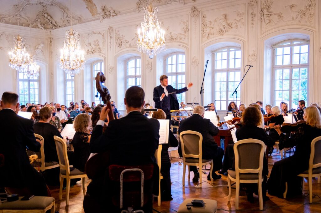 Muzikālais piedzīvojums turpināsies pulksten 19, kad vienā no skaistākajām un greznākajām telpām Rundāles pilī – Baltajā zālē Liepājas Simfoniskais orķestris diriģenta Gunta Kuzmas vadībā uzburs Johannesa Brāmsa un Volfganga Amadeja Mocarta simfonisko skaņu krāšņo pasauli.