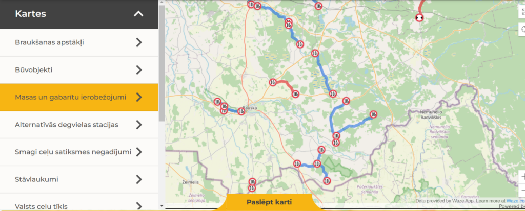Visvairāk posmu ar pagaidu masas ierobežojumiem šķīdoņa dēļ ir Kurzemē un valsts centrālajā daļā. Karte ar posmiem, kur noteikti ierobežojumi, šeit.