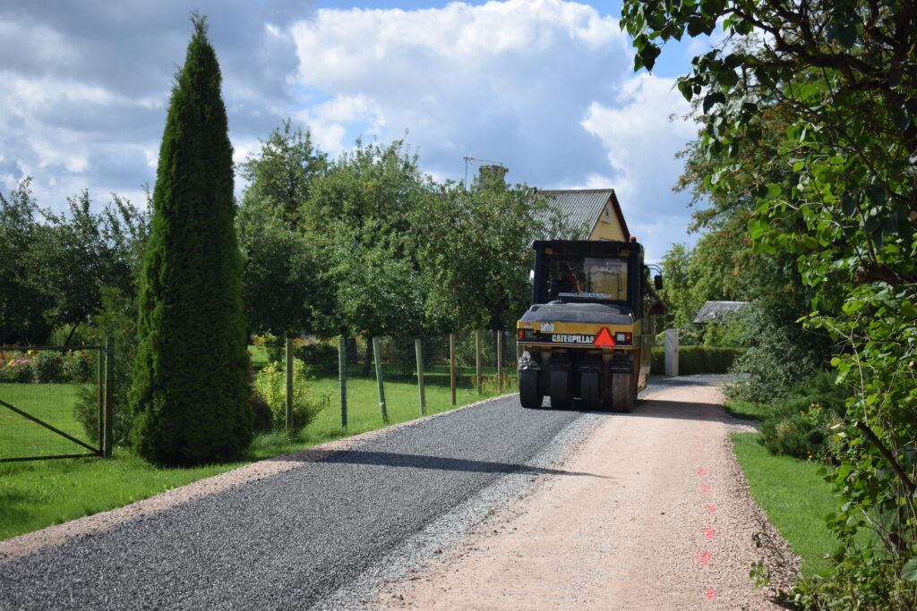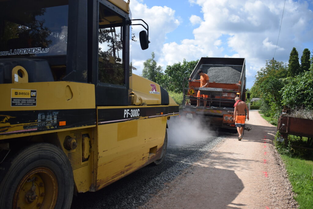 Baložu ielā Vecumniekos pastiprināta ceļa seguma virskārta