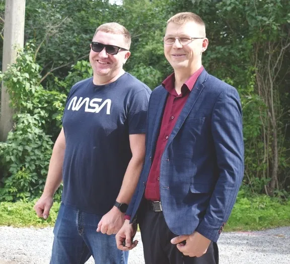 PAšVALDīBAS PĀRSTĀVJI – Vecumnieku apvienības pārvaldes Vecumnieku pagasta nodaļas vadītājs Lauris Mediņš (no labās) un SIA «Mūsu saimnieks» ceļu uzturēšanas un teritoriju speciālists Ingars Štelfs – vēroja, kā rit darbi Baložu ielā. FOTO – ZANE SKARA