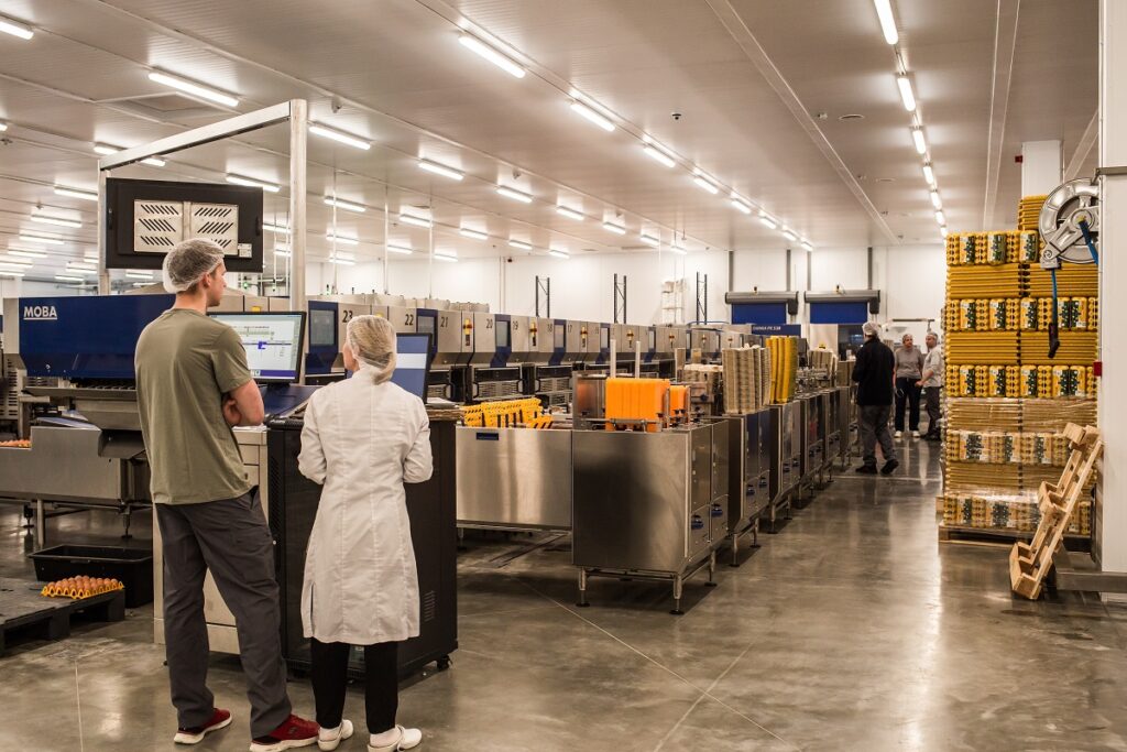 L. Miltiņa skaidro, ka robotizētā un mākslīgā intelekta darbinātā paletizācijas sistēma sastāv no diviem robotiem, astoņām paletizācijas līnijām, kas domātas vairāk nekā 145 produktu veidiem, kā arī īpaši ražotnei izstrādāta robota satvērēja koncepta. Jaunā gatavās produkcijas paletizācijas sistēma kopā ar vēl citām olu pakošanas un šķirošanas iekārtām uzstādīta jaunā, modernā “Balticovo” ražotnes ēkā 8500 m2 platībā, kura tika nodota ekspluatācijā jau 2020. gada novembrī. Ražošanas kompleksā tiek šķirotas un safasētas vairāk kā viens miljons olu dienā, kā arī vārīšanas cehā ik mēnesi tiek saražotas nedaudz virs 300 tonnām vārītas un lobītas olas.