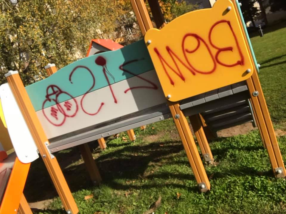 “Priecājāmies, ka atjaunots laukumiņš pie skeitparka, taču pēc neilga brīža tas tika appūsts ar krāsu. Uz slidkalniņa milzīgā apmērā bija uzkrāsots vīrieša dzimumloceklis, rupjības bija sarakstītas arī uz iekārtas sāniem. Ar kaimiņieni centāmies, pielietojot vissaudzīgāko ķīmiju, notīrīt, taču neveiksmīgi, pusaudžu rokrakstu nevarēja izdzēst. Nācās izmantot krāsas noņēmēju, kas pabojāja arī orģinālo krāsojumu, bet citādāk nost nevarēja dabūt,” stāsta Agnese.