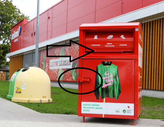 Aizslēgts. 😁 Priejš tam domāta atvere pa kuru viņas ielikt kobteinerā. A kur var mest nederīgās drēbes,jo parastajos atkritumos nedrīkst,bet kur tad var likt?