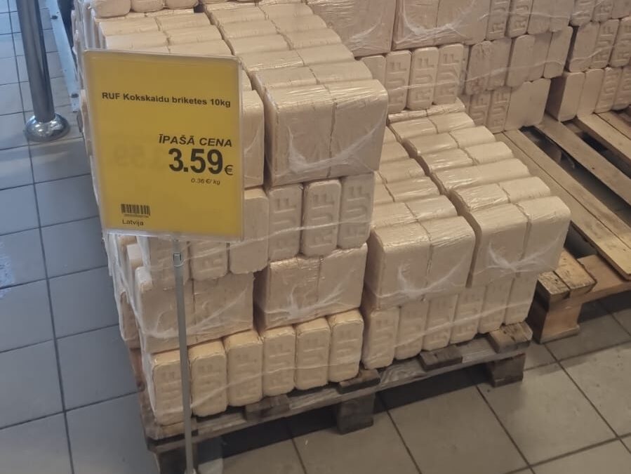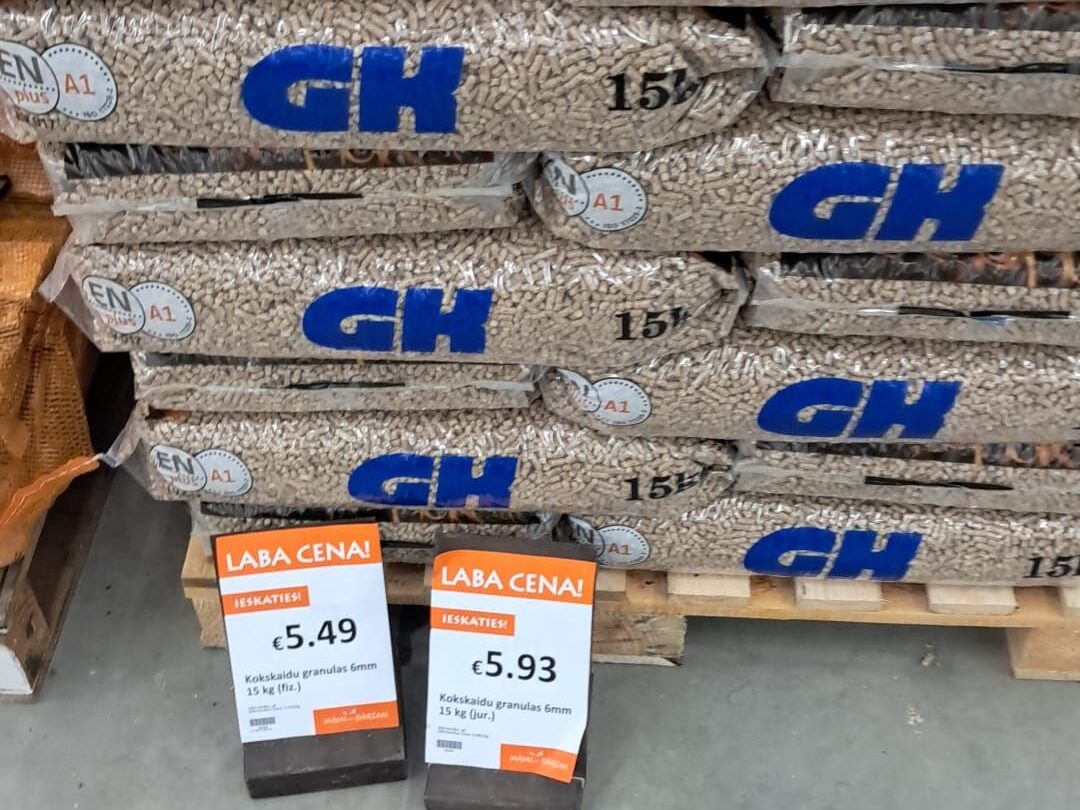 Bauskas veikalā “Kurši” sestdien, 31. janvārī, kokskaidu granulas nebija nopērkamas, bet skaidu briketes varēja iegādāties.