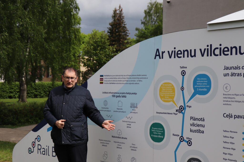 Olainē ministrs iepazīstināja klātesošos ar “Rail Baltica” dzelzceļa līnijas īstenošanas progresu un ieguvumiem. “Pa jaunā dzelzceļa sliedēm kursēs ne tikai starptautiskie, bet arī reģionālie vilcieni. Arī Olaine būs viena no tām vietām, kur piestās “Rail Baltica” vilciens, dodot jaunas iespējas cilvēku mobilitātei, jaunu iedzīvotāju piesaistei un ekonomiskai aktivitātei. Pašlaik notiek līnijas projektēšana, bet jau nākamā gada beigās plānots uzsākt pamattrases būvniecību,” atzīmēja ministrs.