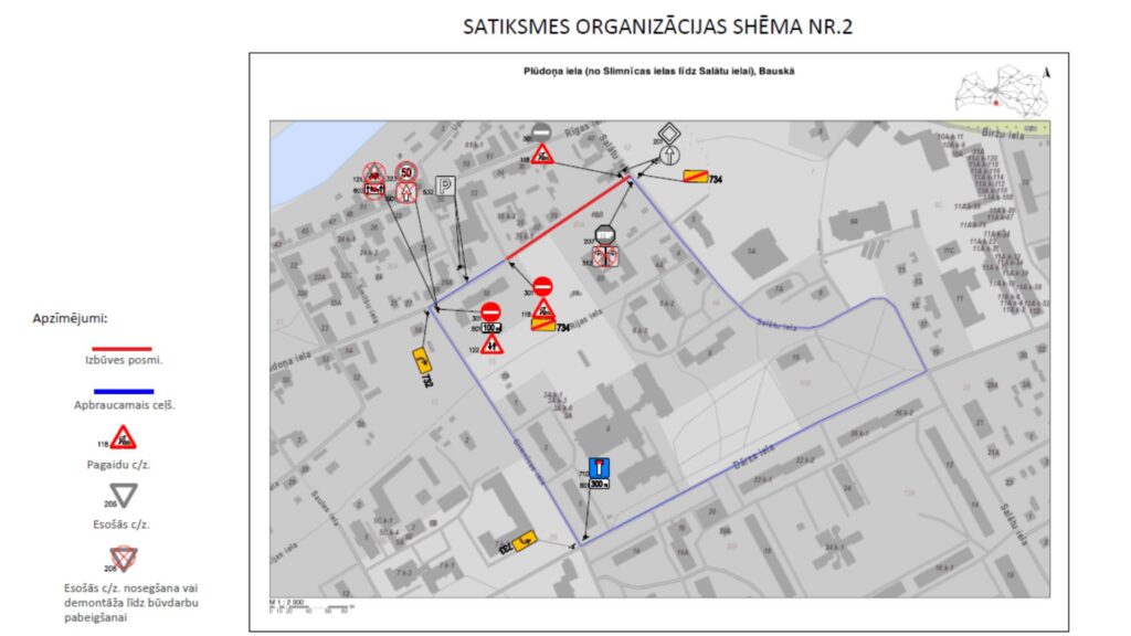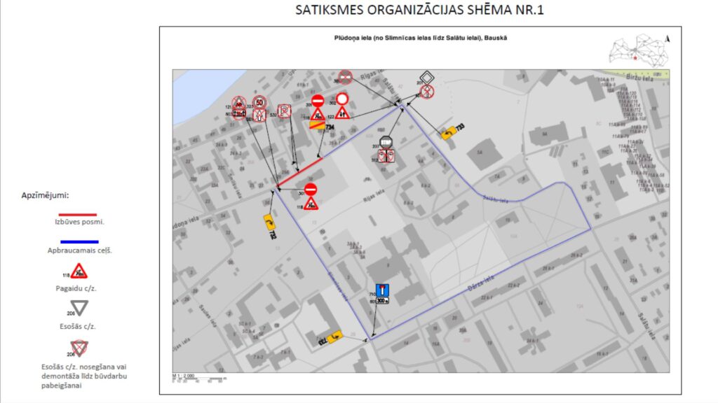 Jāņem vērā, ka norādītajā periodā tiks ieviestas atšķirīgas satiksmes organizācijas shēmas – iedzīvotāji aicināti iepazīties ar tām un sekot līdzi norādēm objektā.