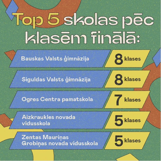 No Bauskas novada izglītības iestādēm sacensībās finālā startēs astoņas Bauskas Valsts ģimnāzijas komandas, četras Bauskas 2. vidusskolas klases, trīs Vecumnieku vidusskolas komandas, divas Bauskas pilsētas pamatskolas klases un pa vieni klasei no Pilsrundāles vidusskolas un Uzvaras pamatskolas. Bauskas Valsts ģimnāzija pēc klašu skaita ir viens no pasākuma līderiem.