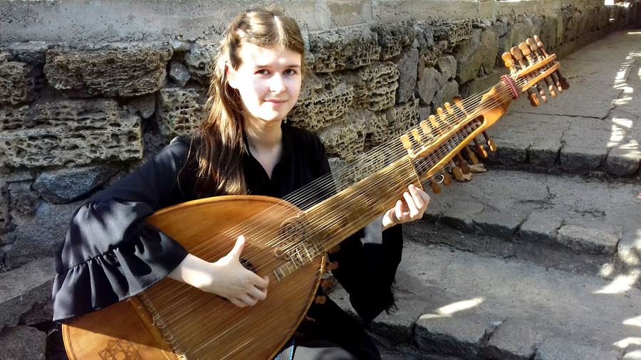 Ukraiņu mūziķe Maria Viksniņa. Viņa ir vienīgā pasaulē, kura spēlē klasisko torbānu. Publicitātes foto.