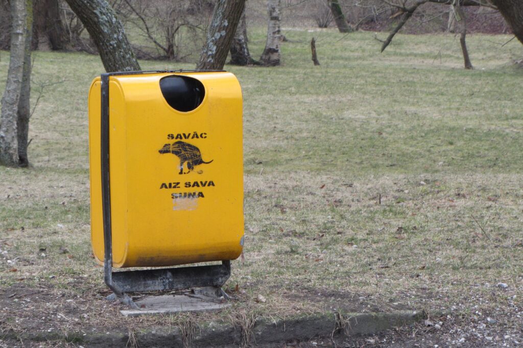 Arī Bauskas novada domes 2024. gada 30. maijā saistošo noteikumu Nr. 9 “Par mājas (istabas) dzīvnieku turēšanu Bauskas novadā» 4.2 apakšpunkts nosaka: “Mājas dzīvnieka īpašniekam ir pienākums pastaigas ar suni laikā pilsētās un ciemos publiski pieejamās teritorijās, neatkarīgi no īpašuma piederības veida, līdzi ņemt iepakojumu suņa ekskrementu savākšanai, kurus pēc to savākšanas jāizmet atkritumu urnā vai konteinerā.”
