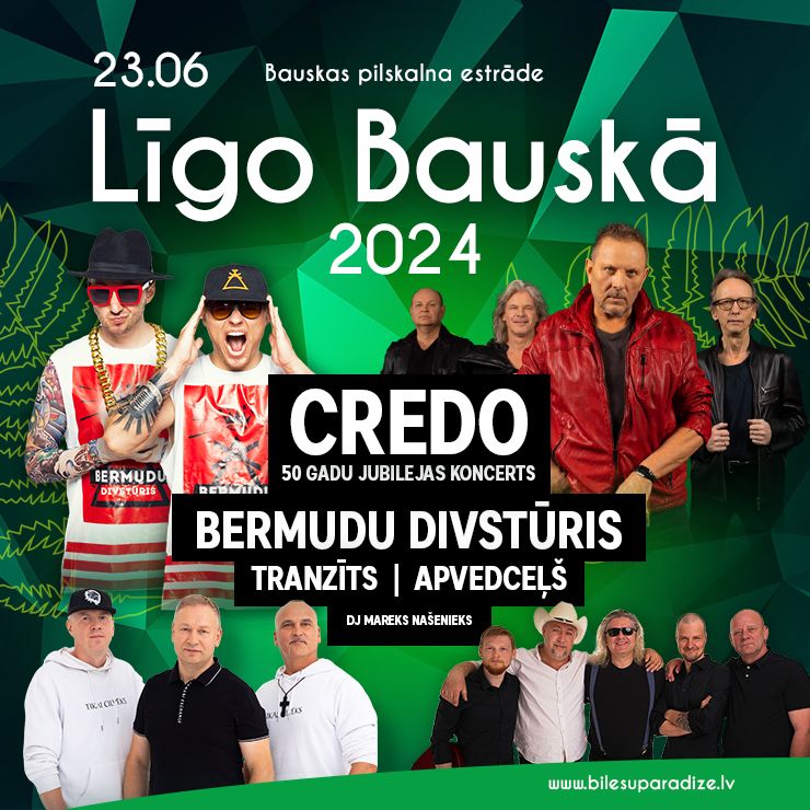Līgonakts ballē, kura ilgs līdz rīta gaismai, piedalīsies četras populāras latviešu grupas: “Credo”, kura 2024. gadā dosies savā 50 gadu jubilejas koncerttūrē un kuras vārds vairs komentārus neprasa, populārā kantrīmūzikas grupa “Apvedceļš”, latviešu humoristiskā repa duets “Bermudu Divstūris”, kura koncerti allaž pulcē tūkstošiem klausītāju, kā arī grupa “Tranzīts” ar savu koncertprogrammu “Atpakaļ nākotnē”.
