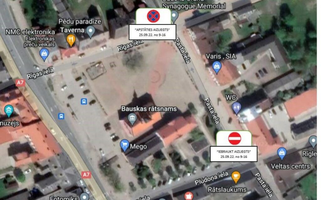 Pašvaldībā informēja, ka autobraucējiem svētdien jārēķinās gan ar ilglaicīgiem, gan īslaicīgiem satiksmes ierobežojumiem ap Bauskas Rātslaukumu un Mēmeles tiltu.