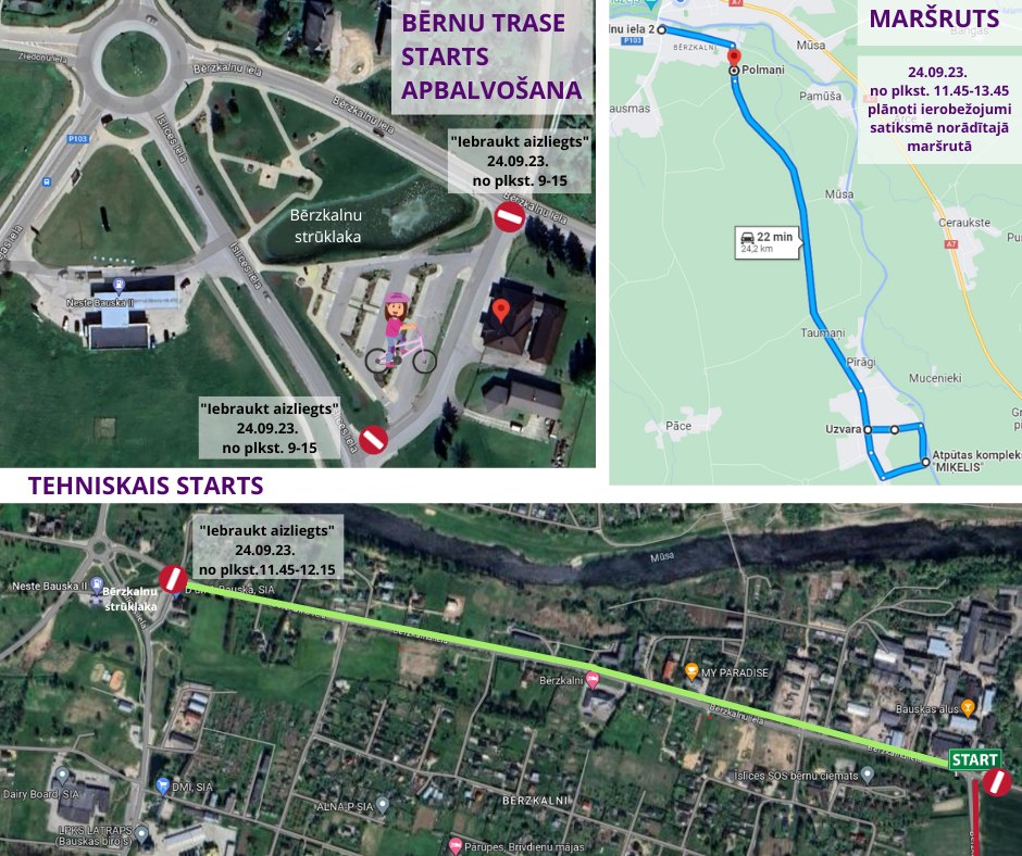 Maršrutā Bērzkalnu iela 2, Bauska – Uzvara (Gailīšu pagasts) no pulksten 11:45 līdz 13:45 dosies vairāki simti riteņbraucēju policijas pavadībā. Autovadītāji aicināti būt piesardzīgiem un ievērot ceļu satiksmes noteikumus, kā arī rēķināties ar lēnāku satiksmi minētajā maršrutā.