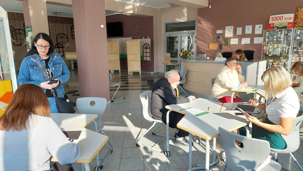 Vēlēšanu iecirknī Bauskas Valsts ģimnāzijas telpās pirmajās minūtēs nebija neviena vēlētāja, bet pēc tam ļaudis sāka sarasties.