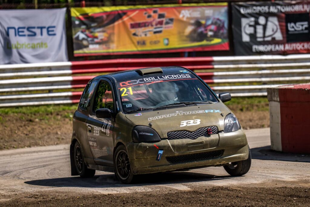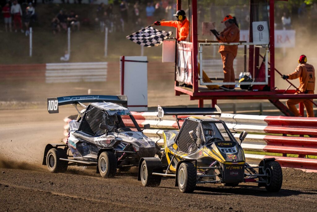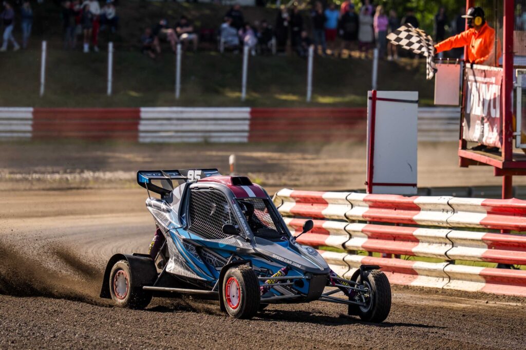 “Larad RX” klasē uzvara Nikam Mežiņam. Aiz viņa – sezonas līderis Rolands Bružāns un Artūrs Krastiņš.