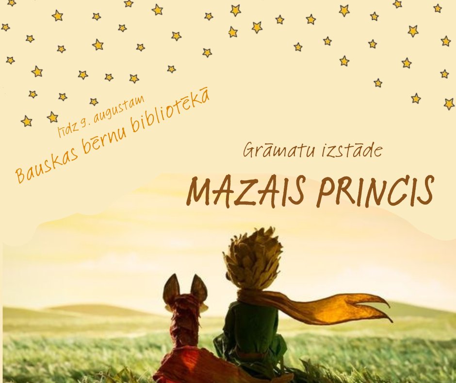 Bauskas bērnu bibliotēkā no 8. jūlija aplūkojama grāmatu izstāde «Mazais princis» – 45 valodās tulkotu franču rakstnieka Antuāna de Sent-Ekziperī populārā stāsta par mazo zēnu no asteroīda B 612 grāmatu kolekcija, informē Bauskas bērnu bibliotēkā.