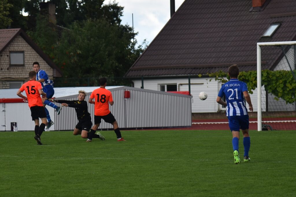 Uzdevumu īstenot neizdevās. 30. minūtē A. Jēgers izmantoja mazu aizsardzības kļūdu un ar stipru sitienu atklāja rezultātu – 1:0. Tālāk pirmajā puslaikā rezultāts nemainījās. Toties otrajā puslaikā vēl viena kļūda rezultātu ļāva dubultot – pēc tālas piespēles soda laukumā «Bauskas BJSS/Mēmele» vārtsargs Roberts Untāls nolēma nākt palīgā saviem aizsargiem, kas jau tā divatā sedza A. Jēgeru, un atstāja vārtus. Tomēr šajā burzmā pirmais līdz bumbai ar galvu aizsniedzās A. Jēgers, to viegli pārmetot visiem pāri, un tālāk bumba mierīgi ielidoja vārtos. Rezultāts kļuva 2:0 un nemainījās līdz spēles beigām, lai arī jāatzīmē, ka abās pusēs bija iespējas rezultātu mainīt. Tomēr iecavnieku vārtos nepārspēts palika Emīls Ēvalds Jemeļjanovs.