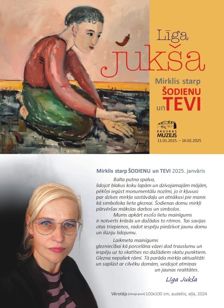 No 2025. gada 11. janvāra līdz 16. februārim Bauskas muzejā būs apskatāma gleznotājas Līgas Jukšas darbu izstāde «Mirklis starp Šodienu un Tevi».