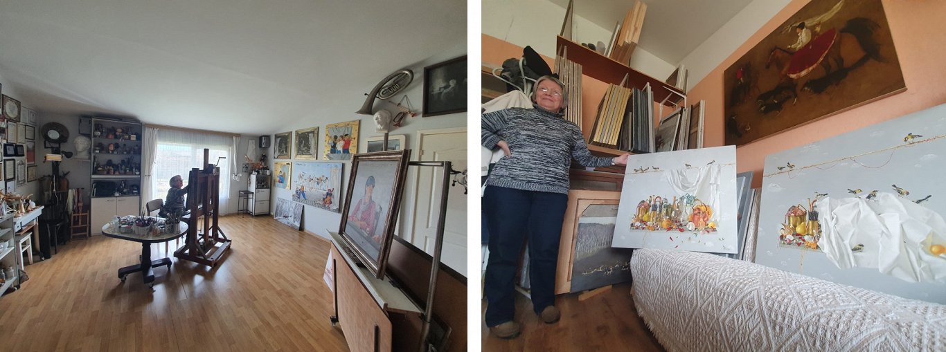 Tatjana Paļčuka-Rikāne un viņas darbi.Foto: Dace Kokle