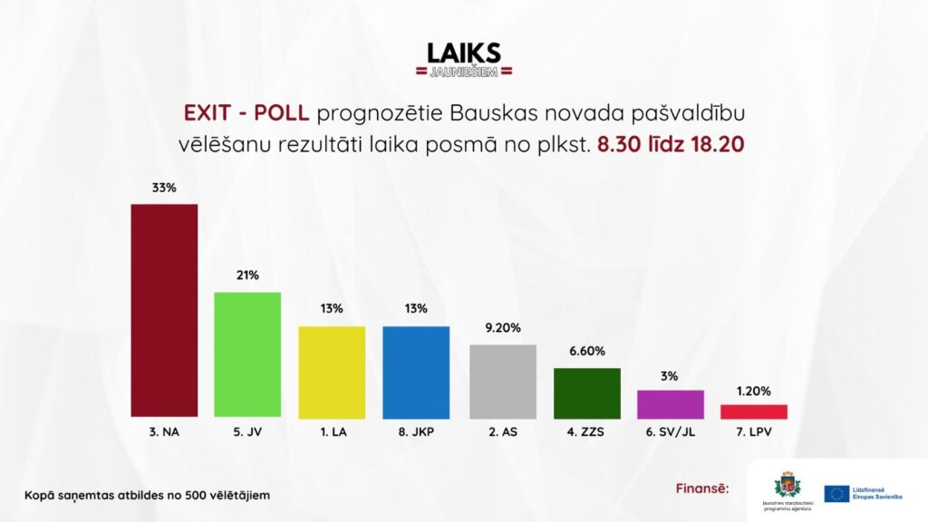 “Daudzi vēlētāji nevēlējās atklāt savu izvēli, un mēs to pilnībā respektējam. Tomēr iegūtie dati ļauj izdarīt aptuvenus secinājumus. Jāatceras, ka “exit pool” rezultāti ne vienmēr atbilst faktiskajiem vēlēšanu rezultātiem,” vēsta biedrība “Laiks Jauniešiem”.