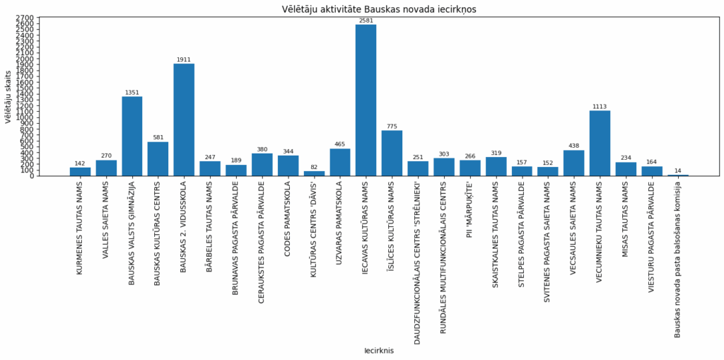 2025. gada pašvaldību vēlēšanās Bauskas novadā nobalsojuši 12 729 cilvēku. Visaktīvākais vēlēšanu iecirknis bijis Iecavas kultūras nams, kur savu pilsoņa pienākumu izpildījis 2581 iedzīvotājs.