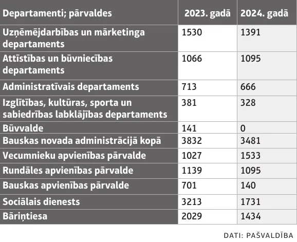 Vidēji lielāko amortizācijas kompensāciju par vienu auto pašvaldība 2024. gadā maksāja Attīstības un būvniecības departamentā – 274 eiro. Uzņēmējdarbības un mārketinga departamentā vidēji par vienu auto samaksāta 232 eiro amortizācijas kompensācija. Mazākā vidējā amortizācijas maksa reģistrēta Bauskas apvienības pārvaldē – 70 eiro par vienu auto.
