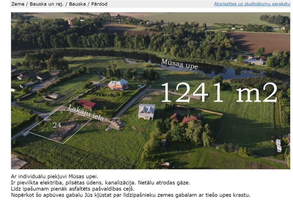 Sludinājumu portālā ss.lv atrodami vairāki zemes gabali, kas tiek tirgoti Lakāju ielā.
