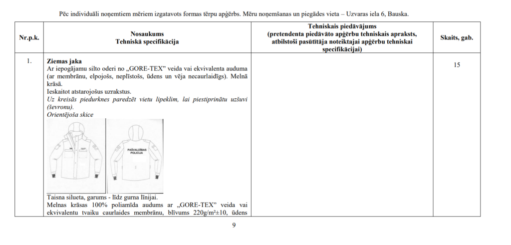 Rīgā reģistrētais uzņēmums bija vienīgais, kas piedalījās Bauskas novada domes izsludinātajā iepirkumu konkursā “Formas tērpu izgatavošana un piegāde Bauskas novada pašvaldības policijas darbiniekiem”.