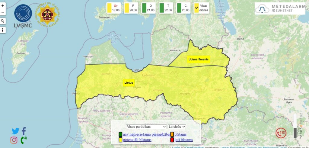 Saskaņā ar meteorologu prognozēm nokrišņu ietekmē ūdens līmeņa paaugstināšanās turpināsies arī pirmdien, un nākamās nedēļas sākumā plašākā areālā aizvien būs spēkā dzeltenais brīdinājums par augstu ūdens līmeni. Palienes un zemākās vietas upju krastos joprojām būs applūdušas.