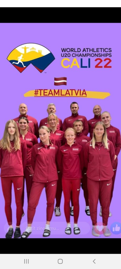 Latviju pasaules U-20 čempionātā pārstāv Agate Caune 3000 un 5000 metru skrējienos, Lāsma Zemīte augstlēkšanā un tāllēkšanā, Gerda Kerija Dreimane septiņcīņā, Vineta Krūmiņa lodes grūšanā un diska mešanā, Sanija Ozoliņa šķēpa mešanā, Invida Mauriņa 800 metru skrējienā, Alisona Diāna Neidere kārtslēkšanā un Aleks Pelcmanis 400 metru barjersprintā. Sportistiem uz Kali līdzi devušies treneri Ainis Raubišķis, Māris Urtāns un Raivis Maķevics.