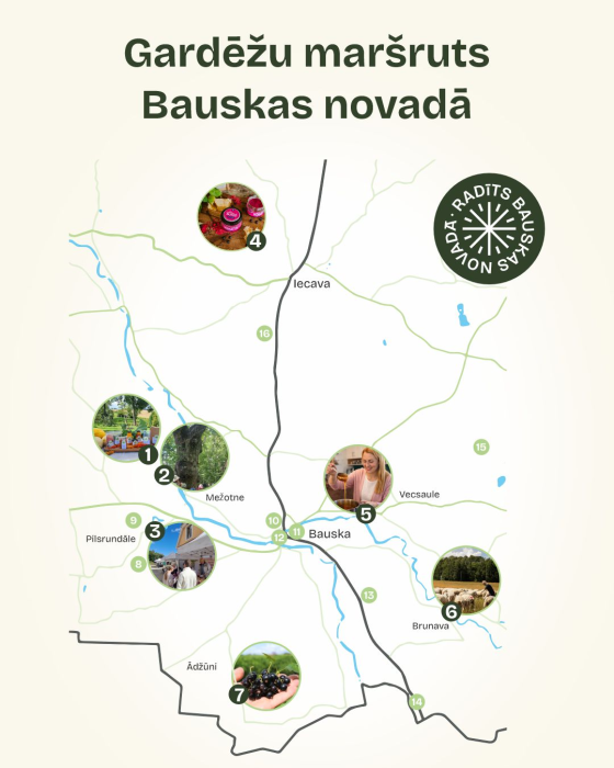 Kartē atzīmētās saimniecības iespējams apmeklēt jebkurā secībā, veidojot savu personīgo garšu ceļojumu.