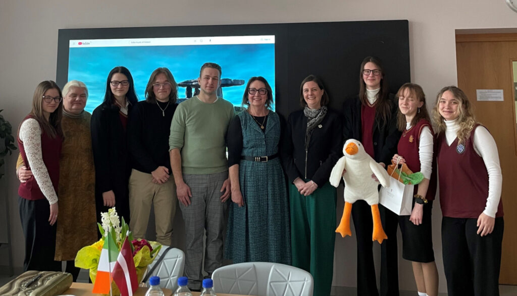 Trešdien vēstniece viesojās arī Bauskas Valsts ģimnāziju, kur tikās ar skolēniem, kuri iesaistījušies Eiropas pulciņa aktivitātēs skolotājas Sarmītes Ābelnieces vadībā. Jaunieši ar interesi uzdeva jautājumus par Latvijas un Īrijas attiecībām, izglītības iespējām un jauniešu sadarbību starp abām valstīm. Galvenā sarunas tēma bija jauniešu veidotie projekti, īpaši aktuālais atkritumu šķirošanas jautājums. Jaunieši vēlējās uzzināt vairāk par atkritumu šķirošanas praksi Īrijā un par iespējām veidot līdzīgas iniciatīvas arī Latvijā un Bauskas novadā.
