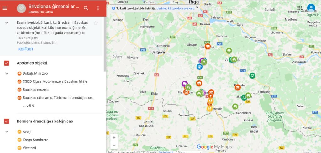 Bauskas novada tūrisma informācijas centrs izveidojis karti, kurā atzīmēti vietējie apskates objekti, kafejnīcas, rotaļu laukumi, atrakcijas, piknika vietas, rotaļu un ballīšu istabas, portālu informēja Bauskas novada tūrisma informācijas centra (TIC) vadītāja Inese Turkupole-Zilpure.