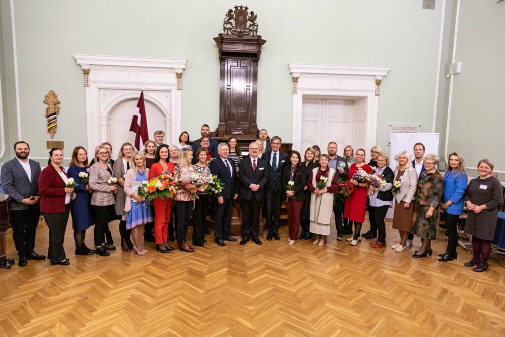 “Lai gan eksaktajos priekšmetos ir daudz talantu, mēs redzam, ka studentu vidū trūkst tādu, kuri studē šos priekšmetus. Talanti ir, iespējas arī, bet tiek izvēlēti tādi priekšmeti, kas neatbilst ekonomikai un darba tirgum. Jūs, mīļie skolotāji, iedvesmojat jaunos cilvēkus atklāt pasauli caur šiem priekšmetiem, caur valodu, un tādā veidā jūs radāt pamatu mūsu nākotnes sabiedrībai. Mūsu skolēni gūst labus panākumus starptautiskās olimpiādēs un konkursos, taču šis ir viens no tiem nedaudzajiem pasākumiem, kad apbalvo skolotājus. Paldies tiem, kuri izvirzīja skolotājus šai balvai! Liels paldies skolotājiem par darbu, ko darāt!” pedagogus apbalvošanas ceremonijā sveica Valsts prezidents Egils Levits.