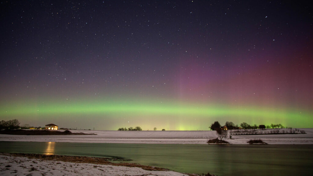 Baušķenieks Guntars Homičs ziemeļblāzmu iemūžinājis Rundāles pagasta Ziedoņos, kā arī Īslīces pagastā.