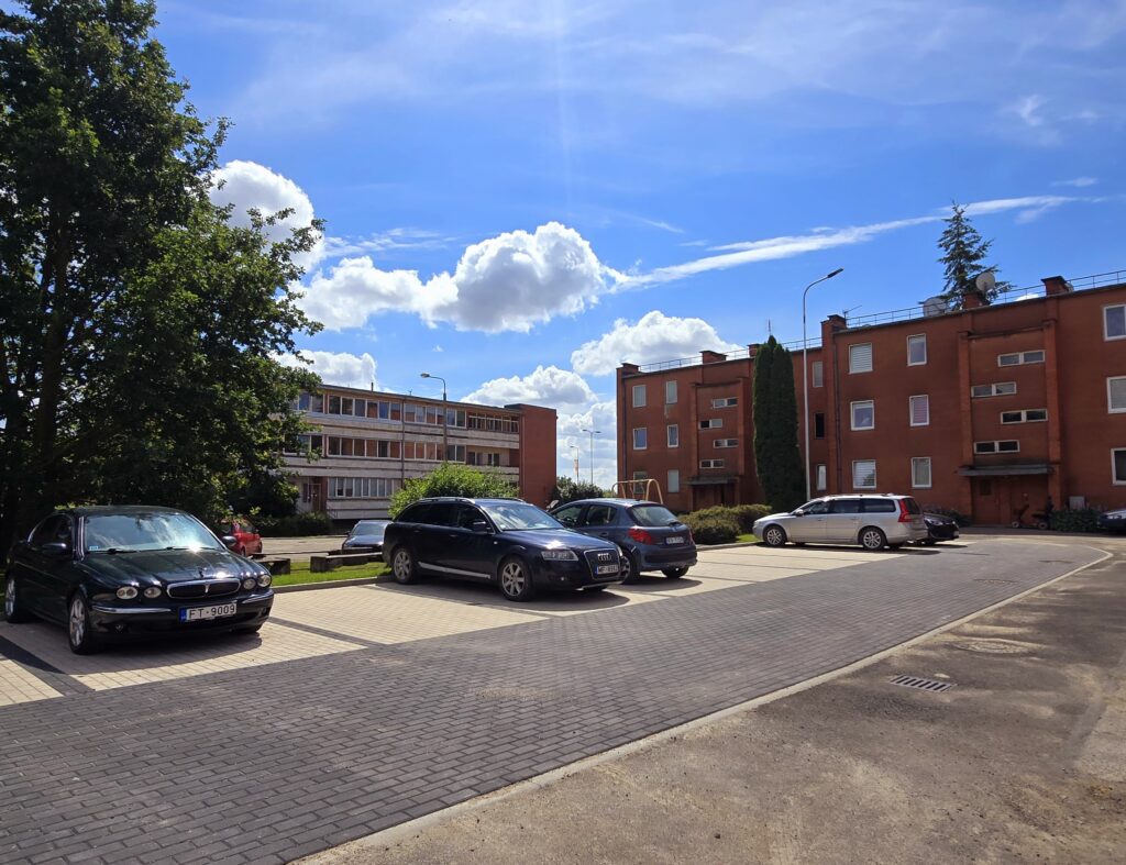Papildu, pēc pilsētas pašvaldības iniciatīvas blakus esošajā daudzdzīvokļu mājas pagalmā Vītolu ielā izbūvētas 10 autostāvvietas un atjaunoti soliņi mājas iemītnieku vajadzībām.