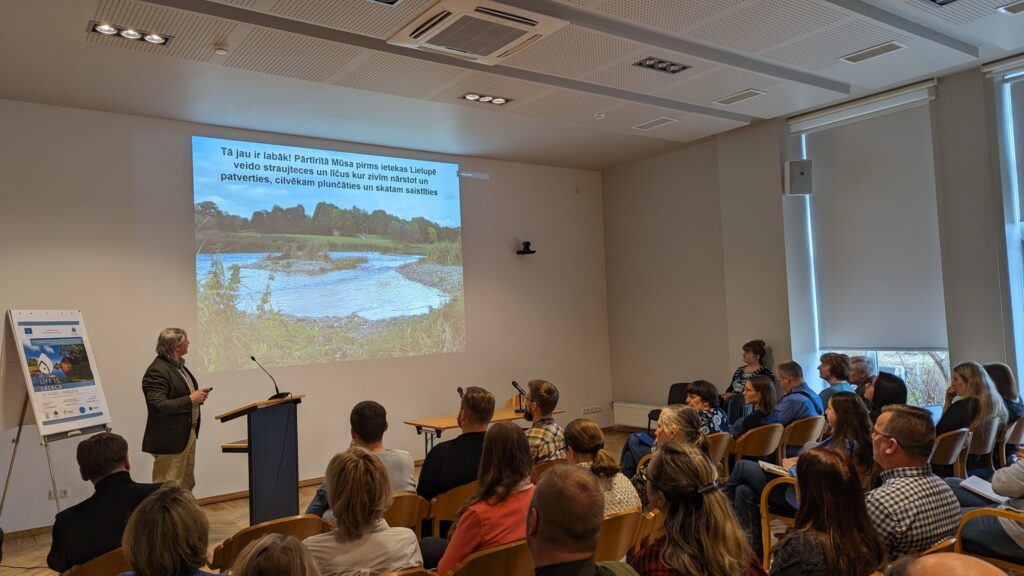 Diskusijā piedalījās un dalījās praktiskā pieredzē gan nevalstisko organizāciju, gan valsts institūciju pārstāvji, kuri jau ir īstenojuši ūdensteču atjaunošanas pasākumus Salacā, Lielupē, Mūsā, Mēmelē, Gaujā un Ventā.