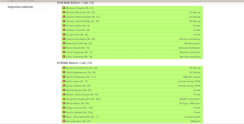 Junior Xtreme bagiju klasē 11 pieteikumi. Starp deviņiem zēniem arī divas meitenes, šajā sezonā klasē debitēs Patrīcija Neikšāne, kura pagājušajā sezonā iekļuva TOP 3 XTM Mini bagiju klasē, bet jau uzsākto cīņu turpinās Magdalēna Vecgaile. Zēnu konkurencē pievienosies Everts Grava un lietuviešu sportists Patrikas Dungveckis.