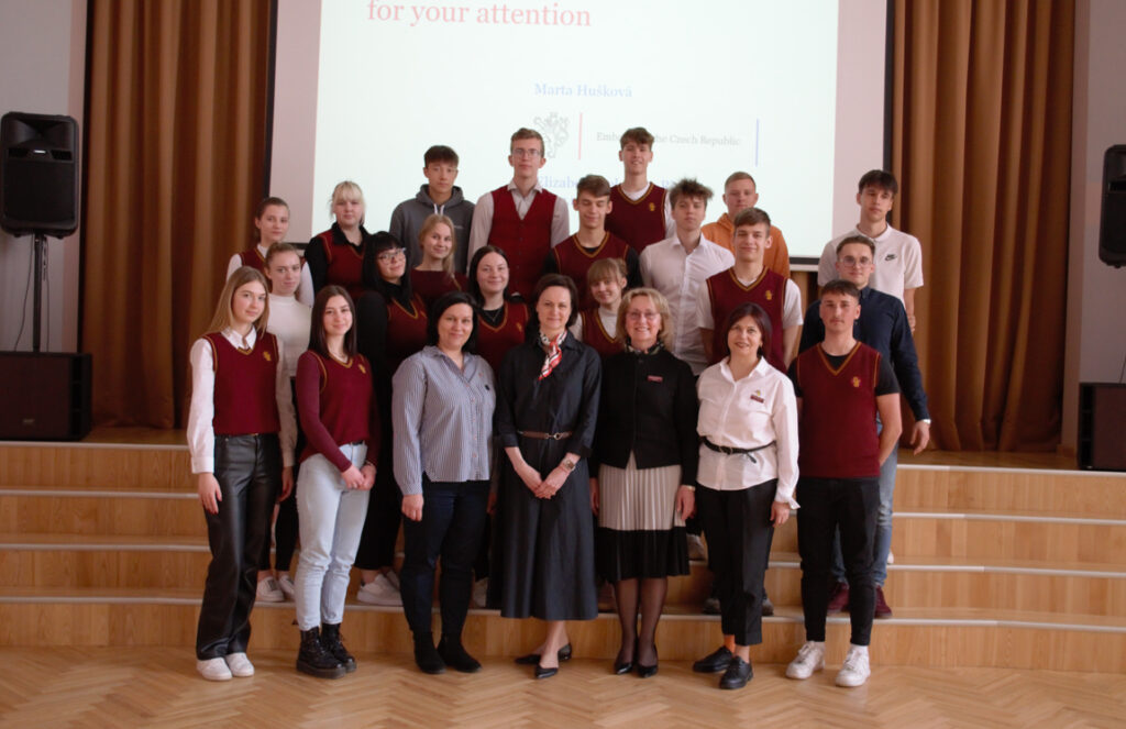Bauskas Valsts ģimnāzijā ceturtdien ar vecāko klašu audzēkņiem tikās Čehijas Republikas (ČR) vēstniecības pārstāves – Marta Huškova, ČR vēstnieces vietniece, vēstniecības 1. sekretāre, un Nadežda Kopoloveca, vēstniecības asistente, Latvijas Universitātes čehu valodas docente.