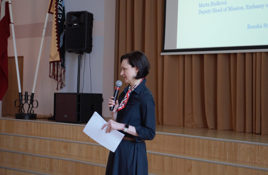 Čehijas vēstnieces vietniece Bauskas Valsts ģimnāzijas audzēkņus iepazīstina ar savu valsti