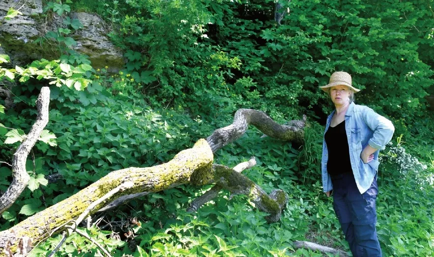 Eksperte gandarīta, pamanot pirmos ārstniecības indaines pudurus. Tās ir Latvijā reti un nevienmērīgi sastopamas, izplatītas upju ielejās, un tām patīk kaļķainas augsnes. Iekļautas arī Latvijas Sarkanajā grāmatā. Vispirms viens indaiņu cers, tālāk jau prāvāka audze. Iepriekšējā apmeklējuma reizē bijuši tikai daži ceri – norāda eksperte. Iemesls to skaita pieaugumam varētu būt tas, ka iztīrīts krūmu apaugums. Pēc tam tiekam mudināti pavērst skatienus virs atsegumiem. Tur zied un zaļo dažādi kokaugi, kas tikpat labi var būt arī no aizsargājamo sugu saraksta. Uz atsegumiem sauļojas vietējie sukulenti – kodīgie laimiņi, čīkstenes. V. Caune, šurp braucot, cerējusi beidzot ziedēšanas brīdī «pieķert» arī meža vizbuļus, kas Latvijai dabiska un diezgan reta suga, pārsvarā Daugavas ielejā. Un šoreiz tiešām ir – uz atseguma malas neliels balts puduris ziedēšanas finālā.