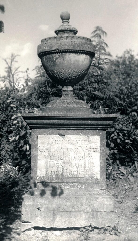 Dērings raksta, ka vāzes kāja jau tolaik bijusi sadrupusi un turējusies vertikāli, «tikai pateicoties vidū ievietotajam metāla stienim un divām koka stutēm», tāpat min faktu, ka dārzs ar visu kapavietu agrāk piederējis kādam Poriša kungam, bet tagad (1882. g. – D. B.) tā īpašnieks ir kāds Cinovska kungs (jādomā, minētā Poriša znots).