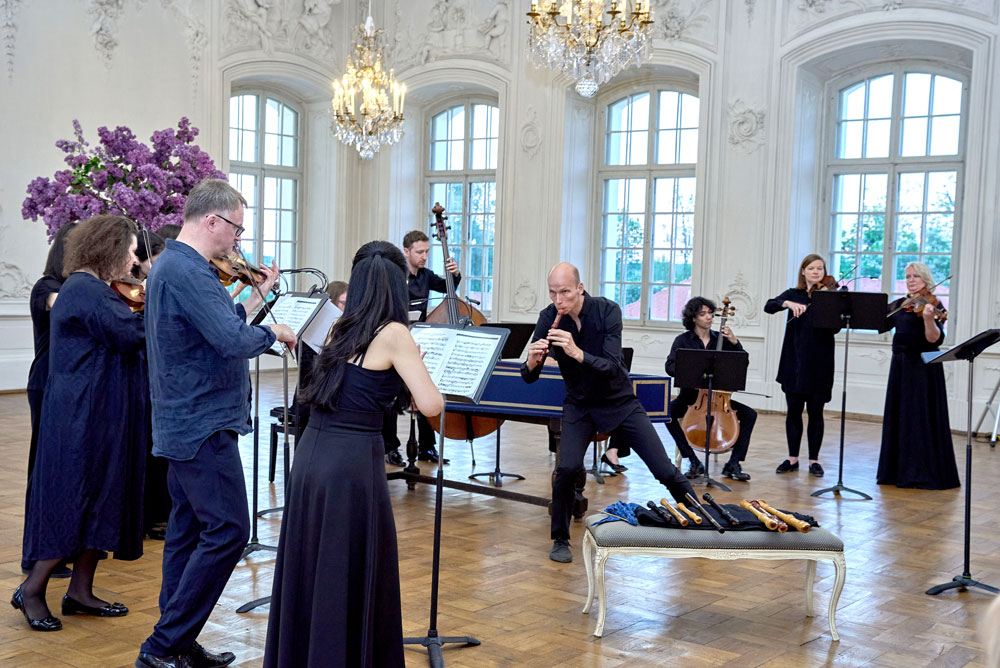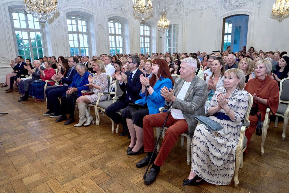 Pēc koncerta Baltajā zālē, kur muzicēja «Collegium Musicium Riga» (diriģents un blokflautists Eriks Bosgrāfs), viesi un grāmatas veidotāji pulcējās Zelta zālē, lai noklausītos muzeja direktores Lauras Lūses uzrunu un kļūtu par lieciniekiem svinīgajai grāmatas atvēršanai. Tajā 18. gadsimtam atbilstošā tērpā gida Olafa Soloveikas iedzīvinātais «gaismas ķērājs» atvēra simboliskas durvis ar mirdzošu lustras attēlu; notiekošais bija noslēpumains, nedaudz mistisks; uzvēdīja aizlaiku elpa, un no tās iznira… atvērta grāmata.
