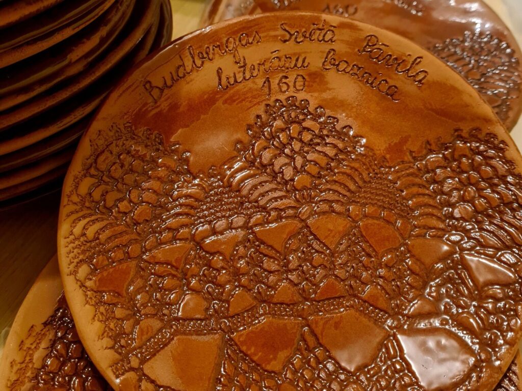 Piemiņas veltes keramikā bija veidojusi Brunavas pagasta iedzīvotāja Līga Bajāre, kuras dzimtas saknes rodamas Budbergā. Draudzes padomes dalībnieki saņēma Līgas mālotavā darinātus simboliskus ķieģelīšus.