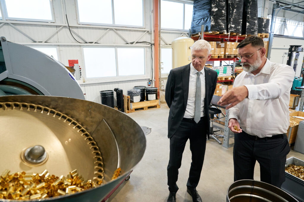 Viņš augstu novērtēja gan redzēto, gan uzņēmēju pieredzi. «Priecājos, cik profesionālā līmenī šeit viss ir sakārtots. Jāatzīst, ka esmu viens no cilvēkiem, kas nesaprata, kā top patronas, un priekšstats tagad ir pavisam citāds, jo tā ir smalka zinātne. Iespaido arī tas, cik liels uzsvars tiek likts uz kvalitāti,» vērtēja ministru prezidents.