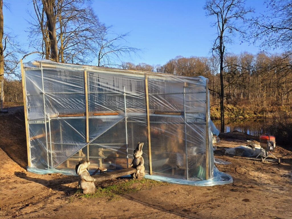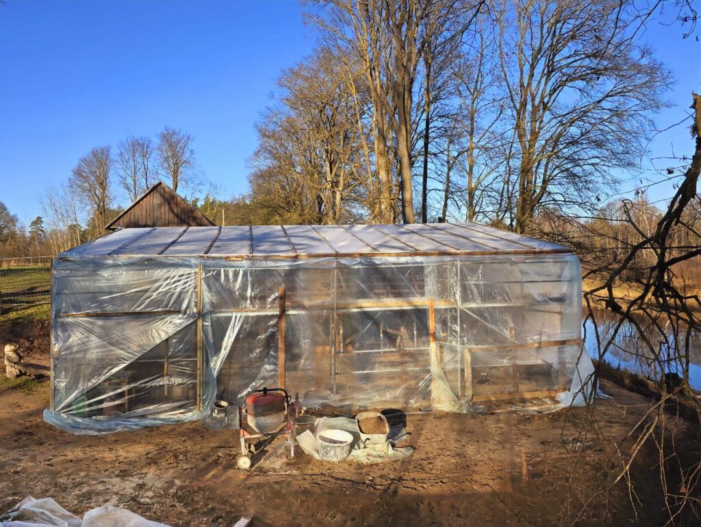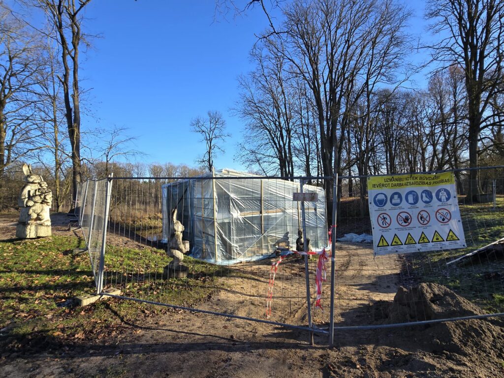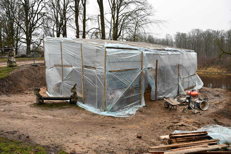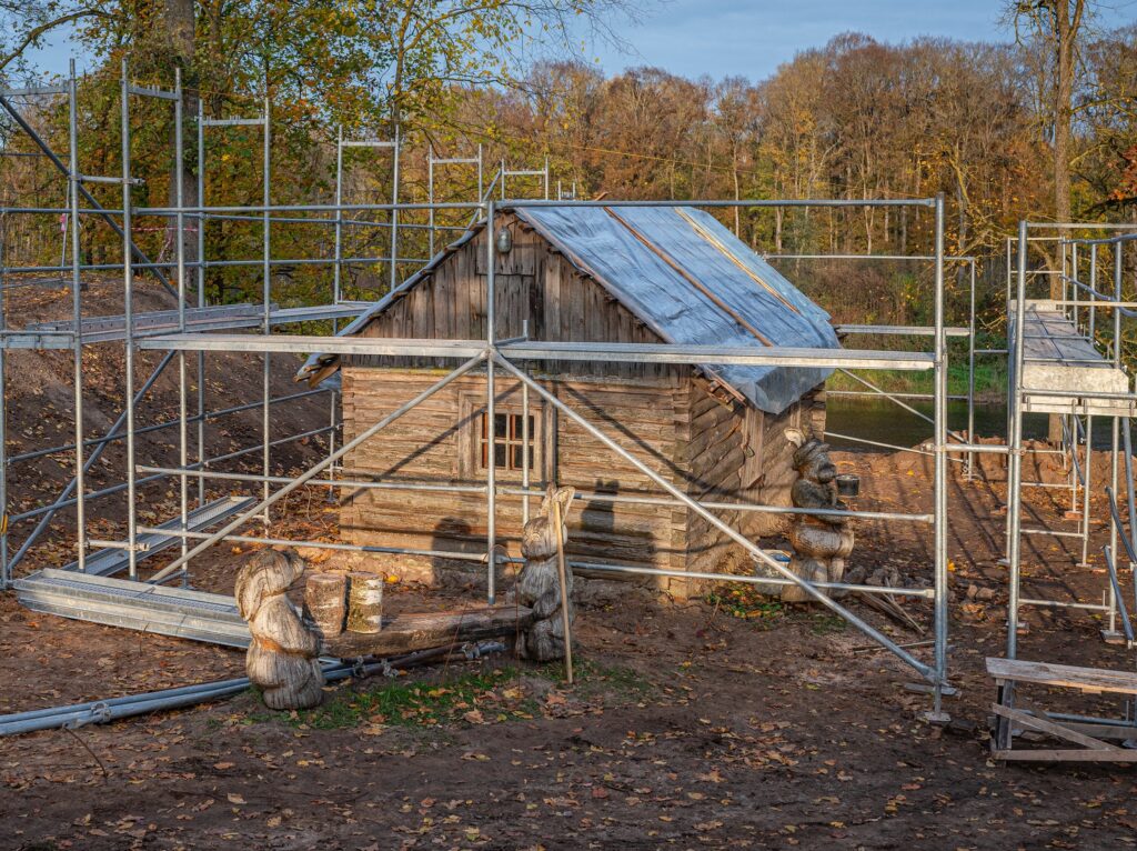 Ē. Pažemecks paskaidroja, ka savlaicīgi, vēl pirms sala, paveikti zemes darbi un izveidots nepieciešamais reljefs, bet būvei uzstādīta arī aizsargkonstrukcija – telts, lai procesu neapstādinātu ne sals, ne sniegs. Pēc Pažemecka teiktā, pirts apakšdaļa vairāku baļķu augstumā bija trupējusi un bija jāmaina, savukārt vētras laikā sagāztie koki ar saknēm bija pārlauzuši sienu savienojumus un sabojājuši pamatus.