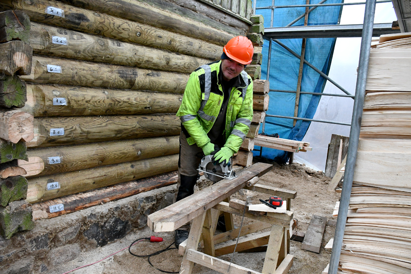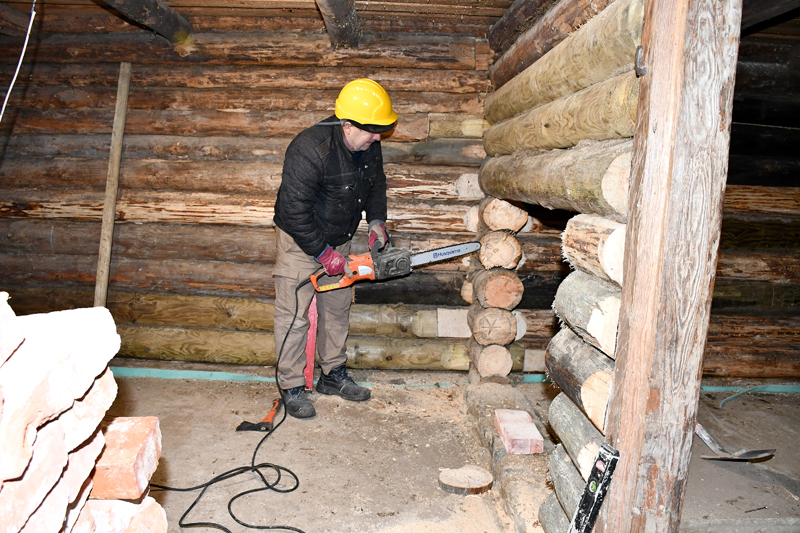 Viņš papildināja, ka pamati pārmūrēti no jauna, apakšējais gulošo baļķu savienojums arī bijis jābūvē no jauna, respektējot orģinālos pakšus, un jāizveido līdzīgs autentisks to kaķējums baļķiem. Tāpat bija jāuzliek jumta segums no skaidas, maksimāli saglabājot oriģinālās detaļas.